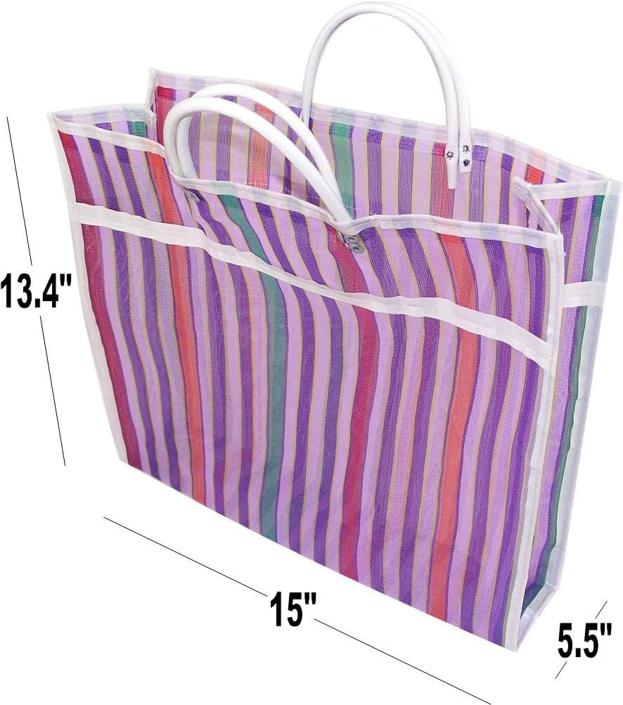 Plastic Imported No Fur PREMIUM QUALITY – Say goodbye to spilled groceries, multiple trips, and double bagging, because these authentic Mexican Mercado Bags are made from strong and flexible high threaded plastic mesh that can hold tons of stuff at a time with durability that prevents them from ripping or tearing. GREAT DESIGN - There is nothing easier than caring your groceries in this lightweight and breathable Mexican Morrales bag that will keep them fresh, and thanks to the double handles made of flexible tubing is sturdy enough to hold of merchandise with style and ease REUSABLE MEXICAN GROCERY BAGS - Unlike the single use plastic bags that don’t biodegrade our traditional and colorful market tote bags are reusable and eco-friendly that will help you to save the planet and your money at the same time MULTIFUNCTIONAL AND GUSSETED – Each bag size is 15-inch-wide by 13.4-inch height and is gusseted where an extra piece of material is added that allow you to package thicker or bulkier, larger items and maximize the space inside these reusable Mercado bags. Great for shopping, storage, laundry, the beach, picnics, travel, large gift and more EASY CARE – Our set of 3 Mexican grocery bags are made from a durable and water-resistant fabric so when they get too slobbery, just wash them with pressure washer and soapy water to make them clean again Are you looking for the right grocery bag that can hold tons of stuff in it? Do you need something that is flexible and durable at the same time? - STOP SEARCHING because now we have our unique MEXICAN MERCADO GROCERY BAGS that you simply gonna love it. Why Our Reusable Mexican Mesh Bags are so Special? Features and Benefits Strong and Durable Material – Nothing can replace the durability, style, and convenience of these gusseted market bags made from high-quality plastic mesh designed to last and don’t crack, so you'll be able to reuse them for years to come. Unique Design – Cute and amazing handbags with traditional colorful Mexican pattern with nice matching colors and double handles made of flexible tubing that makes them easy to carry heavy loads. Multiple Uses - Great for fresh produce, grocery, picnics, travel, and even beach items. Save Money - Using eco-friendly reusable bags over plastic bags will help you to show off your ecological conscience and save money in several areas – Including your own pocket. Perfect Size – Not too big- Not too Small, this grocery tote bag is just the right size for your grocery shopping. Easy to Wash - And the cleaning process is so simple and easy, all you have to is to washed them with pressure washers for a deeper cleaning. Package includes: 3 x Traditional Mercado Grocery Reusable Bags Specifications: Material: Higher Thread Plastic Mesh Product Dimensions: 15” x 13.4” Color: Assortment of color is random Style: Mexican Mercado Bag Made in Mexico Make the right choice and BUY NOW these Mexican mesh bags. We guarantee you 100 % satisfaction!