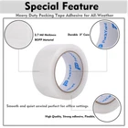 12 Heavy Duty Strong Rolls:This packing Tape Provides excellent holding power strong and anti-splitting for normal, economy or heavy-duty packaging and shipping supplies,Fit for standard width 1.88",3" core dispenser gun, each roll 65 yards long total more than 780 yards( 2340 feet),convenient length High Quality Heavy Duty Tape- 2.7 mil thick thick tape is very good in thickness and toughness, will not tear or split easily. Perfect long lasting bonding range in performance for shipping and storage in hot/cold temperatures. Strong Excellent Adhesive: With strong & secure BOPP acrylic adhesive, the sturdy tape sticks very well and holds boxes together. The extra strength of the material prevents clear packing tape damage during shipping. Perfect long lasting bonding range in performance for shipping and storage. Easy to Use: This transparent tape is suitable for all standard tape dispensers and tape guns. You also tear with your hand. Provides excellent holding power for normal, economy or heavy-duty packaging and shipping supplies. Wide Applications - Apply at the depot, home and office use. The tape could be used for shipping, packaging, box and carton sealing, removing clothing dust and pet hair.