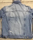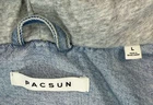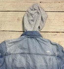 The Pacsun Denim Jacket Hoodie in Blue is a stylish and versatile addition to any man's wardrobe. Made from cotton denim, this button-up jacket features a spread collar, regular fit, and a solid pattern. Perfect for travel, casual outings, or workwear, this jacket also includes hoodie accents, pockets, and is machine washable for easy care. The blue color and outdoor, classic, 90s theme make it a timeless piece for the winter, fall, and spring seasons. Whether you're walking, hunting, or hiking, this denim jacket offers both style and functionality. Check pictures for condition and measurements for size.