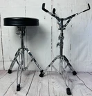 This versatile set includes a padded drum seat and an adjustable snare drum stand, perfect for drummers seeking comfort and reliability during practice or performance. Padded Drum Seat: Features a durable metal frame with a height adjustment range from approximately 21” to 29”. The soft, cushioned seat ensures comfort for extended use. Snare Drum Stand: Designed to hold various drum sizes securely, with rubber grips and a sturdy tripod base for added stability. Both pieces are built with a chrome-plated metal frame and non-slip rubber feet, providing durability and long-lasting performance. Ideal for drummers of all levels, this set is a great addition to your setup!