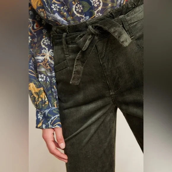 Paige pants Size 26 Approx measurements garment laying flat Waist 15” Rise 11” Inseam 24” Leg opening 11.5” Like new condition! Featuring an au courant paperbag waist, this corduroy pair brings feminine flair to a timeless trouser silhouette. 68% cotton, 30% rayon, 2% spandex Wide-leg silhouette Paperbag waist Front welt and back patch pockets Cropped hem Front zip Machine wash Imported Dimensions •No Returns No Holds No Trades