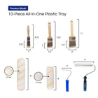 Upgrade your home and create masterpieces of style and design with this painting kit from ! Make planning your projects easier – this all-in-set has everything you need for wall & ceiling painting, trim & edge detailing, drywall & exterior priming, and wood floor & deck staining. KIT INCLUDES: (1) Plastic paint tray (1) 9" Heavy duty roller frame (2) 9" x 1/2" microfiber roller covers (1) 4" Mini roller frame (2) 4" x 1/2" Acrylic mini roller covers (1) 1" Flat sash paint brush (1) 1-1/2" Angle sash paint brush (1) 2" Angle sash paint brush THICKER BRUSH FILAMENTS engineered for high-performance that delivers professional results through improved design. Our sash brushes have thicker filaments that retain paint better – preventing drips and providing more even paint distribution. ABSORBENT 1/2" MICROFIBER NAP The roller covers feature a 1/2 “ microfiber nap that is plush and extremely absorbent, offering lint-free coverage and minimal stipple effect. WASHABLE AND REUSABLE Easily wash and reuse the tray, brushes and roller covers for all your home improvement, painting and staining projects. Cut down on costs and save yourself trips to the hardware . Ideal for smooth, semi-smooth and medium textured surfaces. Go from 'Do It Yourself’ to 'Do It Better’ with ! USE WITH ANY PAINT: Gloss Semi-gloss High gloss Flat Satin Eggshell Matte Matte enamel Primer USE WITH ANY STAIN: Oil Varnish Water-based Lacquer Water-soluble dye Metal-complex (metalized) dye Choose for professional results that work with your wallet… Click 'ADD TO CART’ or 'BUY NOW’ Today! 10 PIECE ALL-IN-PAINTING KIT - Achieve professional painting perfection with this comprehensive set! 1 Tray, 1 9" Roller Frame, 2 9" x 1/2" Roller Covers, 1 4" Mini Roller Frame, 2 4" x 1/2" Mini Roller Covers, 1 Flat Sash Brush and 2 Angle Sash Brushes. INTERIOR & EXTERIOR HOME IMPROVEMENT - Make your home pop with gorgeous color tones, stunning accent trims and all the customized painting motifs available with this incredible set. Perfect for painting walls, ceilings and drywall or staining floors and decks. PROFESSIONAL RESULTS WITH LESS EFFORT - Take the struggle out of your painting and staining projects! You don't have to be a for professional results. Just guide the brush and rollers along and will get the job done right - every single time. SUPERIOR HIGH QUALITY - Enjoy best-in-class performance that makes your work easier. staining and house painting supplies are durable, tough and long-lasting. From tray to brushes and roller covers, everything is easy to wash and reuse. UNBEATABLE VALUE - Save money when you choose the premium online value of craft and painting supplies. Our online storefront lets us keep overhead costs low and put more money back in YOUR pocket! Get brand-name results at a fraction of the cost.