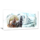 This beautiful Landscape Canvas Art is printed using the highest quality fade resistant ink on canvas. Every one of our fine art giclee canvas prints is printed on premium quality cotton canvas, using the finest quality inks which will not fade over time. Each giclee print is stretched tightly over a 1 inch wood sub frame ensuring the canvas is taught and does not buckle. This canvas art print is gallery-wrapped (the design continues on the sides) , giving it a real art gallery feel. All of our canvas prints are carefully packaged with bubble wrap, fragile labeling and sturdy boxes to ensure a safe delivery. Every canvas print arrives ready to hang on the wall, with the hanging kits included Period: ContemporaryOrientation: HorizontalSubject: Landscapes, Photography, Matching Set, Free Shipping Over $49.99* Details Painted Scene with Horses in Winter - Landscape Wall Art Canvas Print - Product Description: This beautiful Landscape Canvas Art is printed using the highest quality fade resistant ink on canvas. Every one of our fine art giclee canvas prints is printed on premium quality cotton canvas, using the finest quality inks which will not fade over time. Each giclee print is stretched tightly over a 1 inch wood sub frame ensuring the canvas is taught and does not buckle. This canvas art print is gallery-wrapped (the design continues on the sides) , giving it a real art gallery feel. All of our canvas prints are carefully packaged with bubble wrap, fragile labeling and sturdy boxes to ensure a safe delivery. Every canvas print arrives ready to hang on the wall, with the hanging kits included PeriodContemporary OrientationHorizontal SubjectLandscapes, Photography, Matching Set, Modern, Decorative, Horizontal TypeCanvas Art, Fine Art, Fine Art Giclee, Print, Wrapped MaterialCanvas, Cotton, Wood StyleLandscapes, Photography, Matching Set, Modern, Decorative, Horizontal Number of Pieces1 FramedFramed Exact ColorMulti SizeMedium, Large, Oversized, Small ColorMulti Factory sealed boxes cannot be returned if opened.