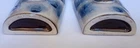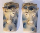 Pair of (2) Cow Planter Pot Wall Pocket Clay Ceramic Pottery Hand Painted Blue and White, in very good condition, one has a barely visible crack above the eye (see photos) and a scuff on the bottom (see photos). Approximately 6.5" tall, 3.5" wide at widest point, 2" front to back