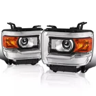 Fit for: 2014-2015 GMC Sierra 1500 Base / Denali / SLE / SLT models only 2015-2019 GMC Sierra 2500HD Base / Denali / SLE / SLT models only 2015-2019 GMC Sierra 3500HD Base / Denali / SLE / SLT / Chassis models only Does Not Fit Models with LED DRL Headlights Does Not Fit 2014 Old Body Style Models Does Not Fit Models with HID Headlights Specifications: OE number: 23130718 23130717 84144049 84144050 23268192 23268193 GM2502394, GM2503394 Material: ABS+PC (ABS Plastic Housing/Polycarbonate lens) Appearance color: 1.Housing Color: Black 2.Lens Color:Clear 3.Reflector Color:Amber