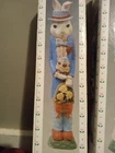 New, minimal damage to boxes Add a touch of vintage charm to your Easter decor with this pair of 12" resin sculptures featuring adorable bunnies. The intricate details on these figures bring a whimsical feel to any space, making them perfect for collectors or anyone looking to add some seasonal flair to their home. With their delicate features and playful poses, these pencil bunny sculptures are sure to be a hit at your Easter festivities.