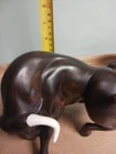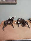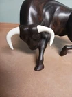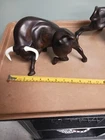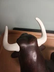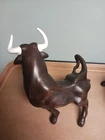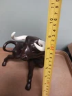 Add a touch of elegance to your living space with this beautiful pair of vintage ceramic bulls. Handmade in the United States by J Weida, these medium-sized statues are perfect for any room and occasion. The brown color and solid pattern make them a versatile addition to any decor. Crafted from high-quality ceramic and porcelain materials, these bulls are expertly painted and sure to impress. The intricate details and American-style design make them a unique addition to any collection. Display them on a table top or in any room to add a touch of animal-themed charm.