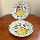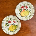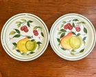 These two vintage Portmeirion 'Summer Fruit' salad plates were only made for two years 1996 - 1997, so this is a less common design. Like many Portmeirion patterns this one is botanically inspired with colorful, hand painted pears and cherries. These beautiful stoneware plates are in perfect condition, a must have for any Portmeirion lover. Measurements: 8 5/8" Diameter. Condition: Excellent with no damage or flaws of any kind.