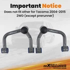 ZJPSS Pair Upper Control Arms 2-4" Lift for 2004-2024 Toyota Tacoma Hilux Prerunner Front Upper Control Arms Lift Height: 2-4 inch Material: - Control Arms: Steel - Bushing: Poly - Finish: Powder-coated Package Includes: - 2x Front Upper Control Arms (Left & Right) - 8x Washers Note: Use lubricating oil to reduce noise (silicone based lubricant with a PTFE additive is a good advice) Please feel free to contact us for whatever we can help via eBay message Professional installation is highly recommended DETAILS DURABLE MATERIAL Steel with tubular design for more strength. Powder-Coated finish for high security & longevity. Ball joints come with 90-degree zerk fittings POLY BUSHING High-quality poly bushings reduce abnormal squeaks and vibrations while driving, eliminate uneven tire wear, and allow you to enjoy a comfortable ride with ease ADJUSTABLE DESIGN This is for a set of front upper control arms, compatible with 2-4 inch lifted vehicles, correct geometry for proper alignment and improved handling WHY CHOOSE OUR ADJUSTABLE CONTROL ARM? - Polyurethane Bushings, zert fittings for easy lubrication. Ball joints come with 90-degree zerk fittings - Harder and durable because they are made of machined steel alloy and painted with industrial powder coating - Eliminates tire wear while improving stability - Improves Rear Suspension, Handling, Predictable Response, and even Prevents Premature Tire Wear - Designed for Street, Track, and Drift Application. Long Service Life - Corrects geometry for proper alignment and improved handling 1. Material: 1) High Tensile Strength Carbon Steel 2) Poly 2. Surface finish: Powder coated 3. Lift Height: 2-4 inch 4. Placement on Vehicle: front, upper, left, right 5. Package dimension: 41.7*35.6*23.2cm, 6. Package weight: 9100g Other items you might also like 6pcs Ignition Coil & Spark Plug Pack For Toyota 4Runner Tacoma Tundra UF495 4506 AC Compressor Clutch Kit For Toyota Tacoma 4 Cyl 2.7L 2005-2015 639392 10348090 Metal AC A/C Compressor Clutch Kit For Toyota Tacoma 2.7L 2005-2015 88410-04062 Door Window Moulding Trim Weatherstrip for Toyota Tacoma Double Cab 2005-2015 Cylinder Head w/ Camshaft for Toyota Tacoma 4Runner 2.4L 2.7L 2RZFE 3RZFE DOHC A/C Compressor Clutch Kit Coil Pulley For Toyota Tacoma 2.7L 3.5L 2016 2017 2018 Wheel Ball Bearings For TOYOTA SEQUOIA TUNDRA 2001-2006 Front Left and Right 2x Front Upper Control Arms 2"-4" Lift For 4Runner 1996-2002 / Tacoma 1995-2004 Cylinder Head Aluminum for Toyota Tacoma 4Runner 2.7L l4 DOHC 2TRFE 2005-2022 2pc Front Wheel Hub Ball Bearings For TOYOTA TUNDRA 2000 - 2006 517011 4x Exterior Window Weatherstrip for Toyota Tacoma Double Cab 05-2015 6816204050 Power Steering Pump With Pulley & Reservoir For Toyota T100 3.4L 3378CC V6 GAS Shipping Terms of Sales Payment Contact us All orders will be shipped within 1 business day after payment has been processed. For orders placed before 5:30 AM PST on business days, most items will be shipped out on the same day. All orders will be shipped with a tracking number via USPS, UPS, or FedEx Express and delivered within 2-6 business days We do not ship to P.O. Boxes, APO/FPO addresses, or Military Mail Boxes. Please ensure your address is confirmed by PayPal before checkout, as we only ship to confirmed addresses. 30-day free return and money back guarantee If you are not satisfied with your purchase, you can return the item with its original packaging to us for a full refund with no restocking fee. Please note that the return cost should be paid by the seller. One Year Unlimited Mileage Quality Guarantee If you receive incorrect items, items that are damaged during transportation, or defective items, we will accept returns and cover the return freight. Please note that the return cost should be prepaid by the buyer. After inspecting the faulty item, we will issue a refund of the return cost to the buyer. We offer a full refund or replacement for all faulty items, which includes the cost of original shipping. Please contact us before initiating a return. Our representatives will provide you with detailed instructions on how to proceed. Our guarantee covers only the cost of the item. We are not responsible for installation or other fees, such as labor, towing, additional repairs, or related expenses. We only accept payment through Paypal for all orders, which should be made through eBay. Paypal offers various payment methods, including credit card, direct debit, VISA, and others. For more information, please visit Paypal. Our customer service center is open 24 hours a day, seven days a week. If you have any questions, please don't hesitate to contact us. We are dedicated to providing excellent customer service and will do everything we can to ensure your satisfaction.