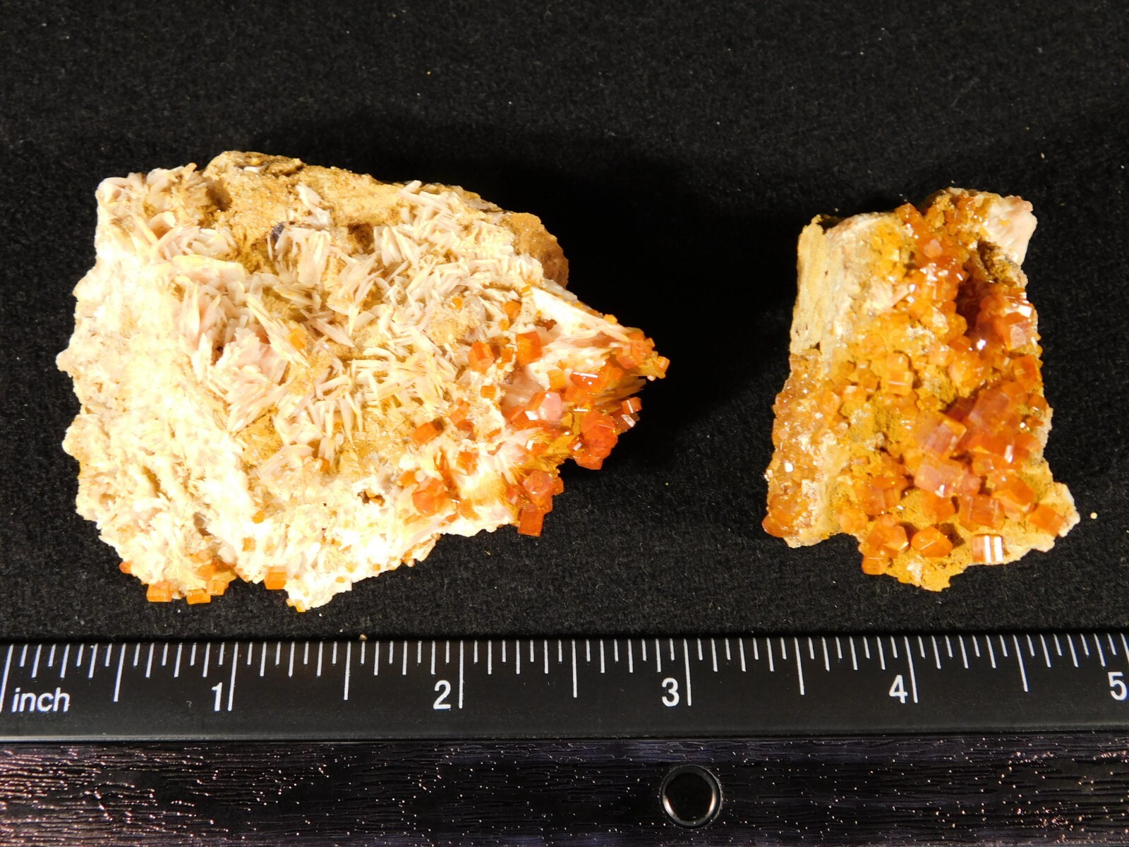 Hello, here are TWO!! nice and 100% natural Vanadinite Crystal clusters with shiny perfectly formed orange hued crystals on a contrasting colored matrix! They were mined in Morocco. Please note that these crystal clusters are WAY nicer in person as it is difficult to get all of the detail and true colors to show up in the photos! The largest overall piece or matrix measures around 2 13/16" or 7.1cm at its biggest or from opposing side to side. INTERNATIONAL BUYERS PLEASE NOTE : Import duties and taxes are not included in the price of the item or the shipping charges. These are the buyers responsibility. If you are concerned about them, please check with your country's customs office before purchasing. RETURN POLICY We guarantee you will be satisfied with your item or we'll refund your purchase price, less shipping charge, upon safe return of the item in original condition within 14 days. Prior to returning the item, please contact within 48 hours of receiving item. Buyer is responsible for all return shipping charges.