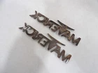 This product is a pair of OEM chrome metal emblems badges for a 1974-1977 Ford Maverick. These vintage parts are suitable for car placement on the left and right sides. Made in the United States, the emblems feature the Maverick logo and come with an adhesive attachment type for easy installation. Perfect for Ford Maverick owners looking to add genuine OEM parts to their vehicle, these chrome emblems add a classic touch to the exterior of the car.