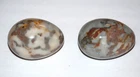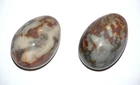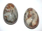 Pair of Italian Marble Alabaster Stone Eggs 3" Easter Tan Gold White Decorative. Replacements . They each measure 3" long by 2" wide. Excellent pre owned condition with no chips or cracks. They've been well cared for in a smoke free home for close to 50 years.