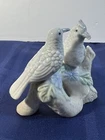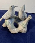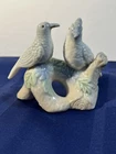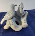 Pair of Older Pastel Ceramic Love Birds. Sitting Together On A Branch of Flowers Great on a Shelf or Dresser No Damage Noted