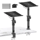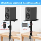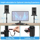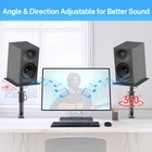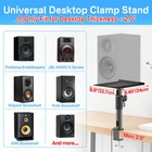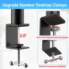 Wide Compatibility – The heavy-duty 9.3" x 8.9" desk speaker stand platforms are versatile, accommodating a variety of devices such as speakers, laptops, projectors, WiFi routers, CD players, and most small studio monitors. These stands are designed to enhance both the sound quality and stability of your audio equipment. Adjustable Height – The speaker stands offer adjustable heights from 8.7" to 15", providing an optimized listening experience. Equipped with a safety pin for added security, the stands ensure your speakers stay firmly in place, preventing falls and potential damage. You can easily customize the height to suit your preference, improving sound quality even further. Angle & Rotation Adjustment – The platform on these speaker stands can tilt 15° forward or backward, allowing you to fine-tune the angle for the best sound projection and clarity. Additionally, the pole can rotate 360°, giving you complete freedom to position your speakers for optimal audio performance. Cable Management - The studio monitor clamp stand feature large cable management holes (2.19" H x 1.21" W), allowing for the storage of larger power cables. This design efficiently conceals and organizes cables, ensuring a clean and clutter-free setup. Extras for a Neat Workspace – Tired of messy cords and a cluttered desk? Our product includes additional cable ties and a convenient headphone holder. The cable ties help organize and secure loose wires, while the sleek headphone holder keeps your headphones accessible and neatly stored, freeing up desk space and preventing damage. Transform your chaotic desktop into a clean, organized setup with these thoughtful extras. Sturdy & Secure Design – Crafted from high-quality metal, these desk speaker mounts can support up to 40 lbs, ensuring your equipment is held securely. Anti-Slip, Anti-Scratch Protection – Featuring upgraded EVA pads, the desktop clamps are designed to prevent slipping and scratching. These pads not only keep the stands securely in place and protect your equipment but also safeguard your desktop from scratches—like a superhero for your workspace! Space-Saving Design – With a minimal desktop footprint of just 2.0" x 2.0" for the clamp, these desk organization stands are compact and efficient, saving valuable desk space. The desk organizers help your workspace tidy and desk set up without compromising functionality.