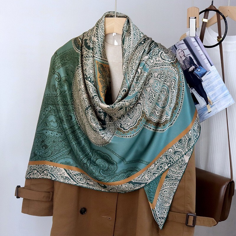 $ 31.56Sally Boutique 14~18 Momme Twill Silk Wrap Scarf Carriage Print Square Shawl 35"