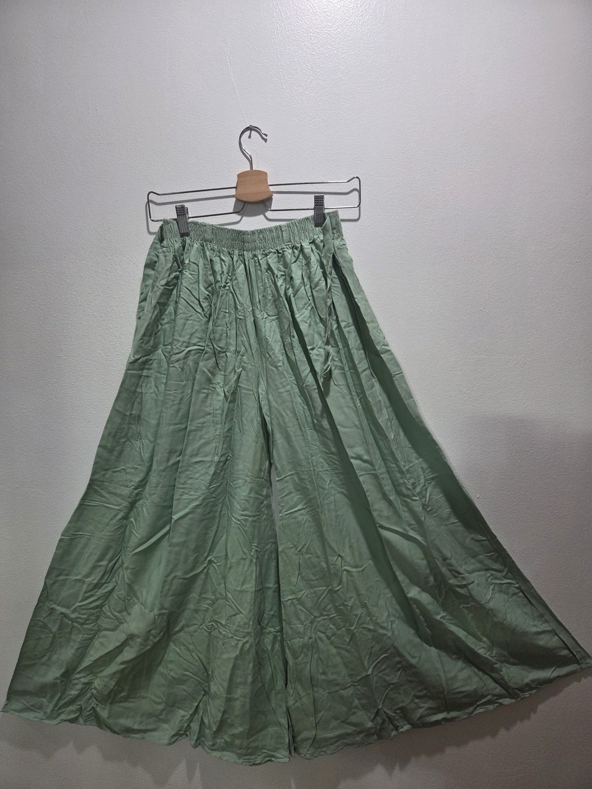The Palazzo Pant Women's is a stylish and comfortable pair of wide-leg pants made from rayon fabric. Featuring an elastic waist for ease of wear, these casual pants are perfect for the summer and spring seasons. With a solid pattern and bohemian fashion theme, these pants are available in all colors and come in sizes small to medium, with a waist size of 26 inches. Handmade in Bangladesh these regular fit pants are a trendy and versatile addition to any woman's wardrobe.