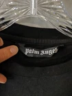 Palm Angels Shirt Mens Large Black Palm Tree Skull Graphic Tee Condition: Good used condition with light wear, no major flaws, see photos for details Black shirt with bold "PALM" graphic in white flame outline on front, "ANGELS" on back Vibrant green palm tree graphic border with small white skulls among the leaves Classic crewneck, short sleeve style Tag size: Large (L) Approximate flat measurements: Pit to pit ~52cm (20.5 inches), Back length ~73cm (28.5 inches) Material: 80% cotton, 20% polyester (main body); 100% cotton lining; ribbing: 96% polyester, 4% elastane Authenticity QR tag present on inner label Palm Angels branding at collar and side tag Edgy streetwear style, signature Palm Angels gothic font and palm theme