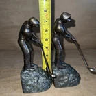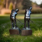 Add some charm and elegance to your bookshelf with these Paloma Collection Cast Metal Golfer Bookends. Crafted with exquisite detail, these bookends are made of durable cast iron with a beautiful patina finish that adds a touch of sophistication to any room. The black color of the bookends complements any decor, making it a perfect addition to your home decor. These bookends are not just decorative but also functional. They are designed to keep your books organized and in place. The Paloma Collection Cast Metal Golfer Bookends are a perfect gift for golf enthusiasts and book lovers alike.