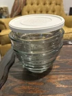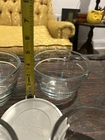 This set of four glass measuring prep bowls from Pampered Chef is a must-have for any kitchen. The clear glass and round shape of the bowls make them perfect for measuring and prep work, while the 2 cup and 1 cup capacity ensures you can handle any task. The bowls are dishwasher safe, making them easy to clean and maintain. The set includes four bowls with measurement markings etched on the inside, making it easy to measure out ingredients without having to transfer them to another container. The glass material ensures durability and longevity, while the clear color adds a touch of elegance to any kitchen. Whether you're a professional chef or a home cook, this set of measuring bowls is a valuable addition to your kitchen. Two 2 1/2 cup bowls and two 1 1/2 cup bowls with one lid for the the 1 1/2 cup bowl