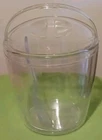 This Pampered Chef ice bucket is perfect for all occasions. The clear acrylic material gives it a stylish look, and the polka dots lid adds a fun touch. The handle lid and serving spoon make it easy to use and add a convenient touch. Measuring 9 inches in back and 7 inches in front of the ice bucket, and 8 inches in width, this ice bucket is the perfect size for any gathering. Whether you're hosting a party or just enjoying a refreshing drink on a hot day, this ice bucket is sure to impress.