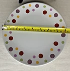 Add a touch of playful elegance to your dining table with this set of four Pampered Chef Simple Additions Polka Dots plates. These 8-inch plates feature a lively retired polka dot pattern in multicolor that is perfect for serving desserts, salads, side dishes, or even bread. Made of high-quality ceramic, these plates are durable and easy to clean, making them a great addition to your kitchen and dining set or as an addition to your Pampered Chef collection. Whether you're hosting a casual family meal or a fancy dinner party, these plates are sure to impress your guests with their stylish design and superior quality. Pampered Chef Simple Additions Polka DOTS 8" salad-dessert-side plates Set/4, these are in great/excellent pe-owned condition, with NO chips, cracks or repairs. However, they do show slight wear (utensil marks), which are hard to photograph. Please review all pictures for proper assessment of their great/excellent pre-owned condition