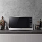 Highlights 14 auto-cook settings for your favorite meals and snacks Panasonic 2.2 microwave delivers 1250 watts of cooking power Features invertor technology for precise, even heating One-touch Genius Sensor for guesswork-free results 23.875" x 19.437" x 14", 43 lbs. The Panasonic 2.2-Cubic Foot Stainless-Steel Microwave Oven with Inverter Technology is a stylish, convenient addition to any kitchen that fits perfectly on the countertop. This microwave gives you 1250 watts of power and since it features inverter technology, it delivers precise heat for even cooking. With the touch of Panasonic's Genius Sensor button, the microwave automatically sets the power level and adjusts cooking or defrosting time, eliminating any guesswork. Thanks to the Turbo Defrost feature, the Panasonic microwave convection oven helps you get dinner on the table quickly with fast and even defrosting. Plus, the Stay Warm and Quick: 30 functionality allows for easy reheating. What Is Inverter Technology? Inverter technology allows you to moderate the energy level that is being transmitted by your microwave oven. This precision allows you to actually cook food instead of simply reheating it. Using an inverter microwave oven allows you to braise, steam, and even poach foods. Yet, it can all be accomplished in the quick cooking time you are used to when using a microwave. What Does the Genius Sensor Button Do? The Genius Sensor button gives you one-touch cooking in its finest form! The Panasonic 2.2 microwave has effectively taken the guessing out of defrosting, reheating, and cooking. The internal sensor measures the steam that is being produced as the food is being heated. The amount of steam will send signals to the microprocessor which can automatically calculate the needed cooking time. It can also adjust the power levels which assures a perfect result. Additional Features This Panasonic Inverter microwave oven is stacked with features including a turbo defrost system that uses a sequencing system to thaw foods in a quick and even fashion. Another extremely useful feature is the ability to maintain warmth. Soups, gravies, and sauces can be kept warm, without overdrying, while the other elements of a meal are prepared. Plus, the interactive menu screen acts as an assistant chef to help prepare everything from main courses to desserts in the Panasonic 2.2 inverter microwave. The language on the display can be adjusted to English, Spanish or French. The abundance of features combined with the inverter technology is all packaged in a sleek Panasonic microwave black and stainless steel design complements every style of kitchen decor.