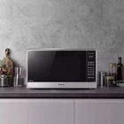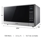 Panasonic 2.2 cu. ft. Stainless-Steel Microwave Oven With Inverter Technology Highlights 14 auto-cook settings for your favorite meals and snacks Panasonic 2.2 microwave delivers 1250 watts of cooking power Features invertor technology for precise, even heating One-touch Genius Sensor for guesswork-free results 23.875" x 19.437" x 14", 43 lbs. The Panasonic 2.2-Cubic Foot Stainless-Steel Microwave Oven with Inverter Technology is a stylish, convenient addition to any kitchen that fits perfectly on the countertop. This microwave gives you 1250 watts of power and since it features inverter technology, it delivers precise heat for even cooking. With the touch of Panasonic's Genius Sensor button, the microwave automatically sets the power level and adjusts cooking or defrosting time, eliminating any guesswork. Thanks to the Turbo Defrost feature, the Panasonic microwave convection oven helps you get dinner on the table quickly with fast and even defrosting. Plus, the Stay Warm and Quick: 30 functionality allows for easy reheating. What Is Inverter Technology? Inverter technology allows you to moderate the energy level that is being transmitted by your microwave oven. This precision allows you to actually cook food instead of simply reheating it. Using an inverter microwave oven allows you to braise, steam, and even poach foods. Yet, it can all be accomplished in the quick cooking time you are used to when using a microwave. What Does the Genius Sensor Button Do? The Genius Sensor button gives you one-touch cooking in its finest form! The Panasonic 2.2 microwave has effectively taken the guessing out of defrosting, reheating, and cooking. The internal sensor measures the steam that is being produced as the food is being heated. The amount of steam will send signals to the microprocessor which can automatically calculate the needed cooking time. It can also adjust the power levels which assures a perfect result. Additional Features This Panasonic Inverter microwave oven is stacked with features including a turbo defrost system that uses a sequencing system to thaw foods in a quick and even fashion. Another extremely useful feature is the ability to maintain warmth. Soups, gravies, and sauces can be kept warm, without overdrying, while the other elements of a meal are prepared. Plus, the interactive menu screen acts as an assistant chef to help prepare everything from main courses to desserts in the Panasonic 2.2 inverter microwave. The language on the display can be adjusted to English, Spanish or French. The abundance of features combined with the inverter technology is all packaged in a sleek Panasonic microwave black and stainless steel design complements every style of kitchen decor. Specifications: Size: 2.2 cubic feet Power: 1250 watts Technology: Inverter technology ensures precise results Exterior: Stainless-steel with smoked glass door Pre-set Menu Items: 14 preset auto-cook menu items Additional Features: Clock, timer, Genius Sensor, Turbo Defrost, Keep Warm and Quick :30 features Control Panel: Tactile button-control panel Energy Conservation: Meets 2016 DOE Energy Conservation standards Safety Features: Includes a child lock Door Design: Upper-left corner of door has a small indentation to allow door to open smoothly Exterior Dimensions: 23.875" x 19.437" x 14" Compatibility: Compatible with Panasonic Trim Kits: NN-TK932SSAP and NN-TK922SSAP Weight: 43 lbs. Turntable: 16.5" diameter glass turntable Assembled Size 24" L x 19" W x 14" H