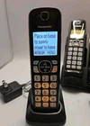 The Panasonic KX-TGF540 is a cordless digital answering machine with 4 handsets in black color. It features wireless functionality and a speakerphone for hands-free communication. The model number is KX-TGF540 and the base unit is PNLC1078. Each handset has 2 rechargeable batteries.