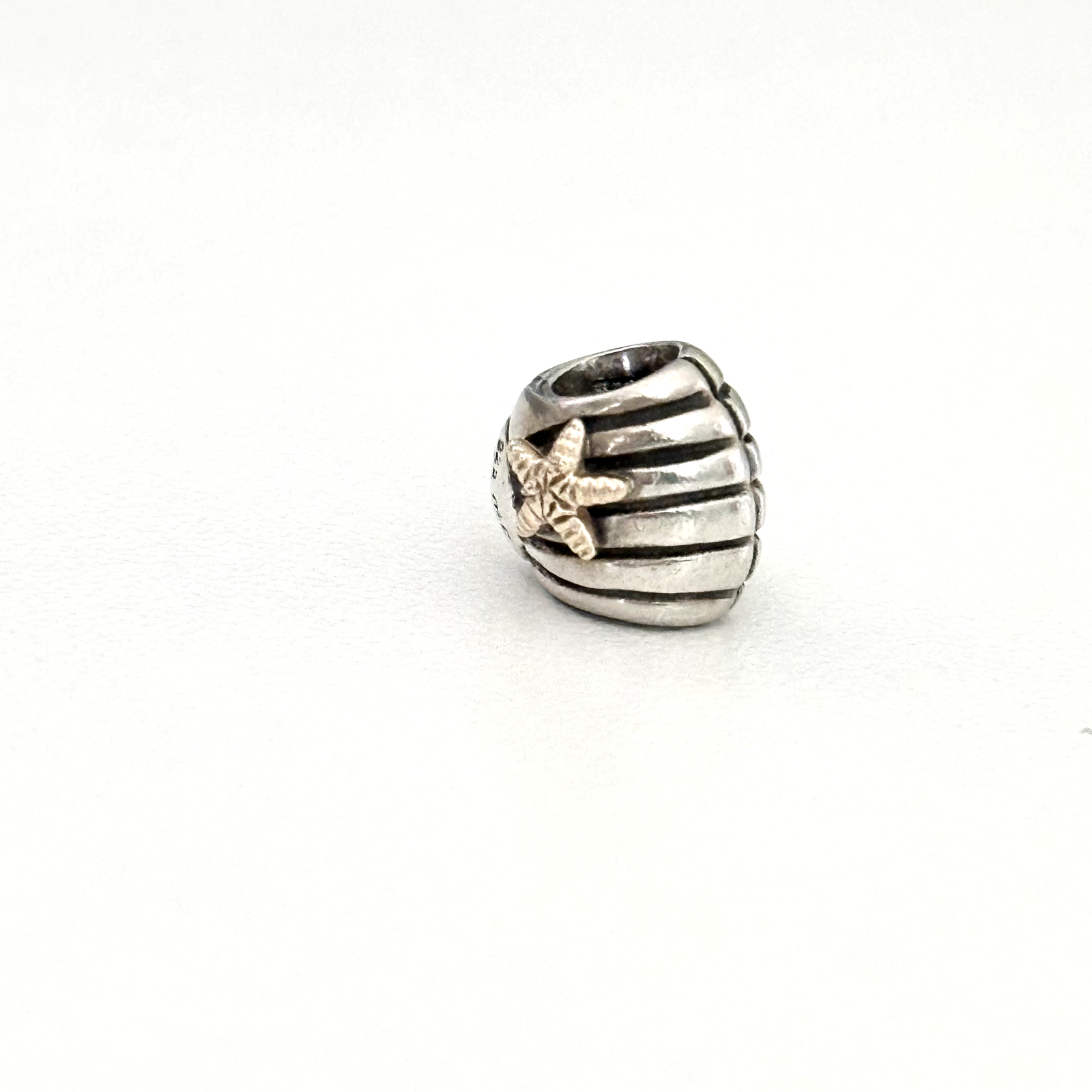 Authentic Pandora 925 Sterling Silver & 14K Yellow Gold Two Tone Seashell Starfish Charm EUC Signed: 925 ALE Rare & retired Very good condition. - Fast shipping, I ship the same or next business day! I also combine shipping. - Thank you so much for shopping with me and please check out my other jewelry listings, I post new pieces daily!