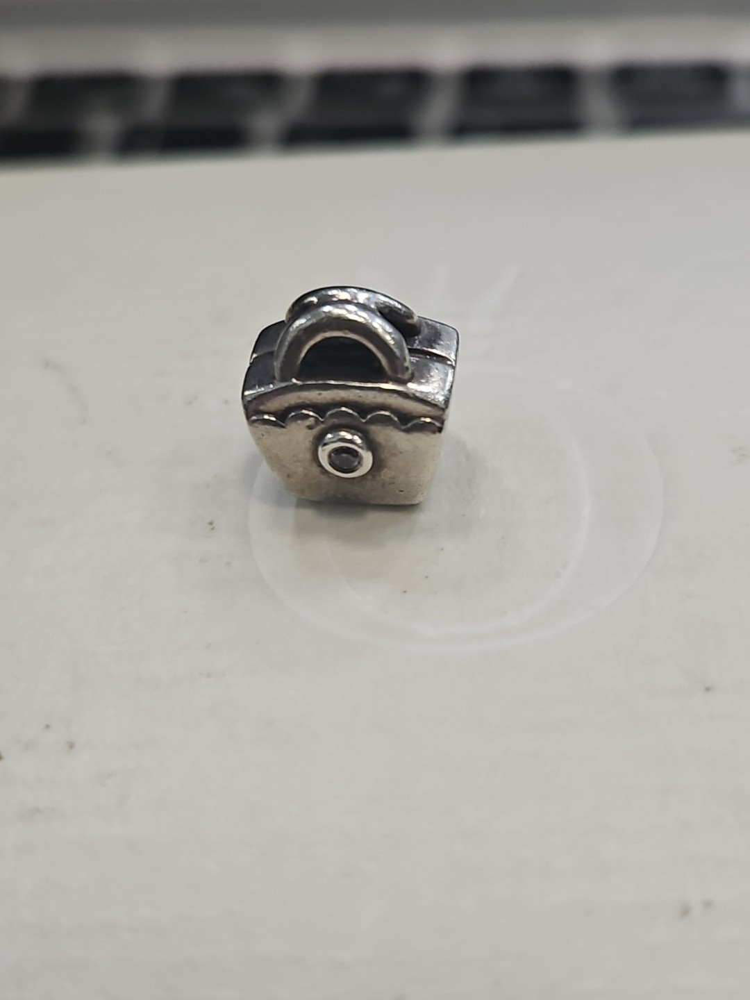 Pandora Sterling Silver Purse Bead with Pink Zirconia - 790309PCZ 925 ALE. Condition is Used. Dispatched with Royal Mail Tracked 48.