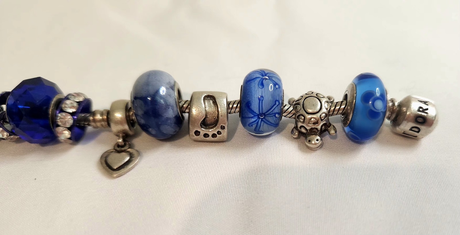 Absolutely stunning bracelet! The mix of genuine Pandora charms, sterling silver, and blue Murano glass beads creates a luxurious, elegant look. The craftsmanship is impeccable, and the bracelet feels substantial yet comfortable. The blue theme is so versatile—perfect for everyday wear or special occasions. Love that it includes authentic Pandora pieces alongside high-quality compatible beads. A must-have for charm bracelet lovers!