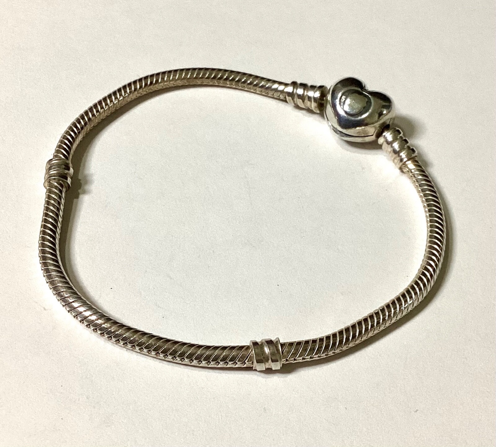Pandora Silver Snake Chain Heart Clasp Bracelet Pre-loved in Very Good Used Condition Length 18.5 cms s925 ALE Please see my other items which you may also be interested in