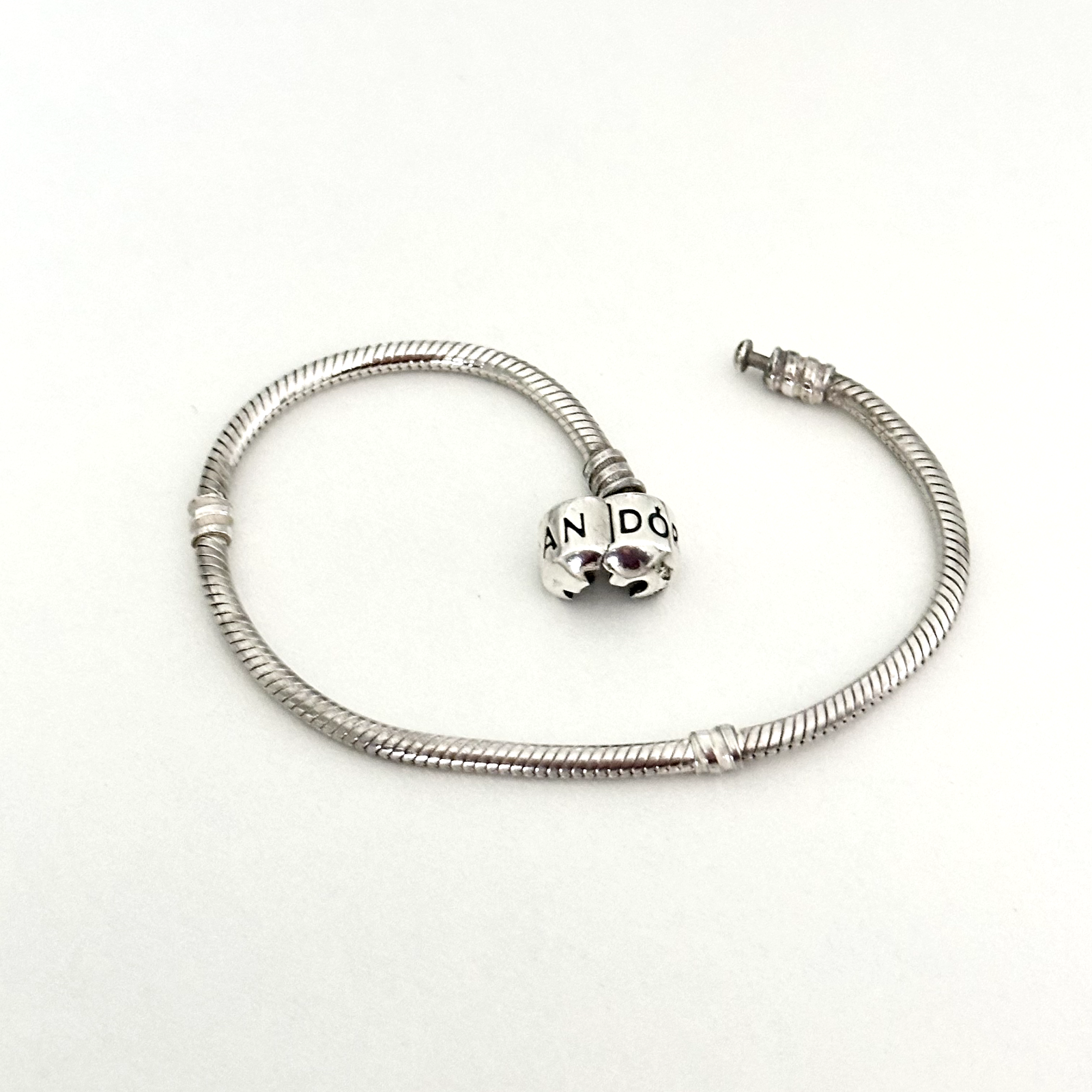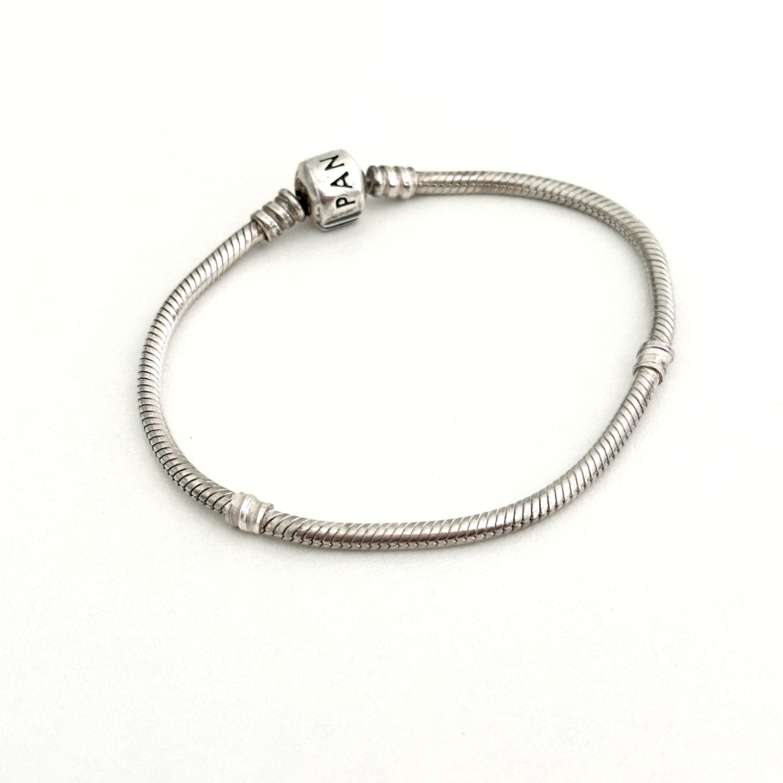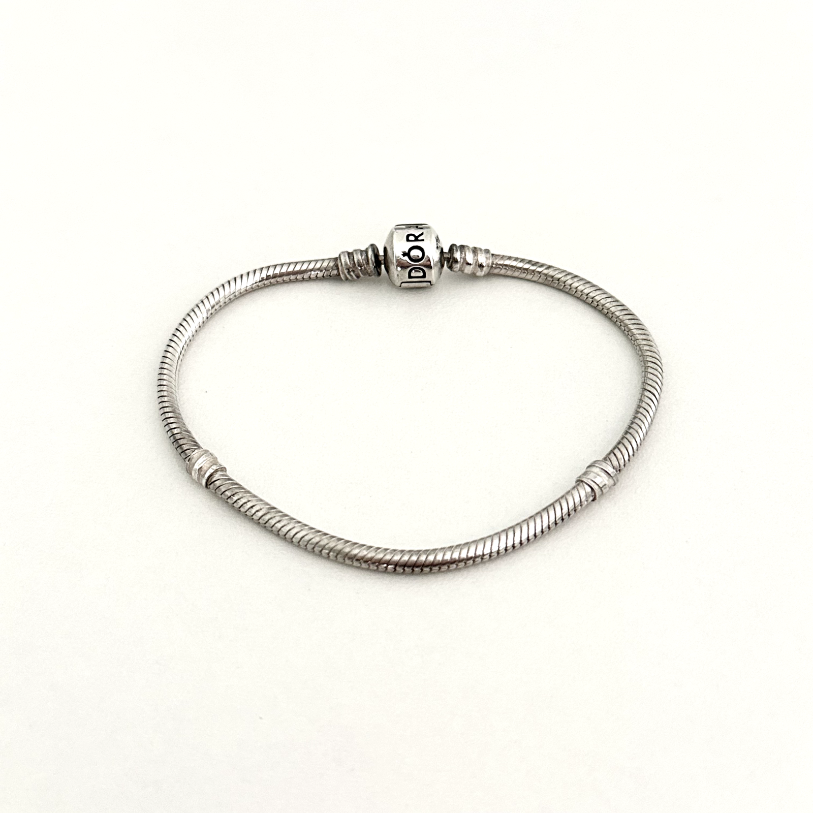 Pandora Sterling Silver Snake Chain Charm Bracelet with Barrel Clasp 7.5 Inches