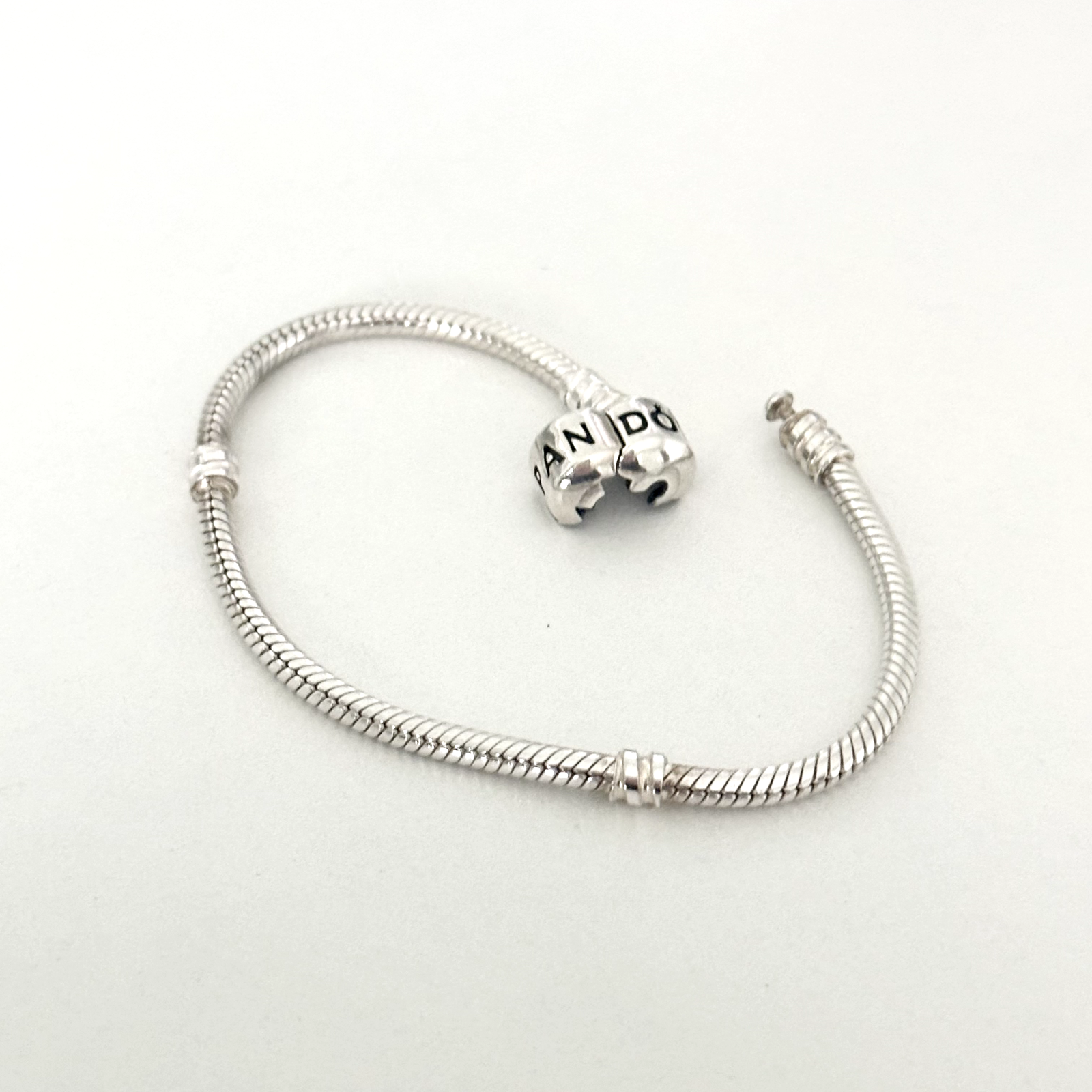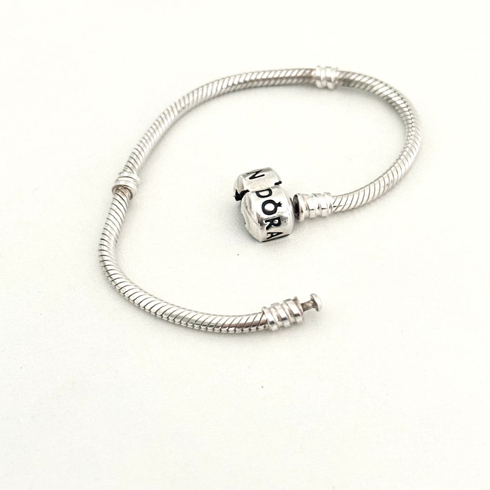 Pandora 925 Sterling Silver Moments Snake Chain Barrel Clasp Charm Bracelet 7.5"