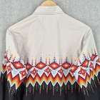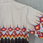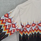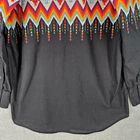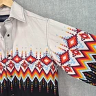 Welcome to Aspen Crossing, your place to shop for men’s modern rustic western wear and refined leisure styles reflecting the rugged beauty of our American West Panhandle Shirt Mens Small Black Ivory Multicolor Aztec Western Pearl Snap Cowboy Rodeo Southwestern Button Up Long Sleeve Brand: Panhandle Style: Mens long sleeve Western shirt with bold multicolor Aztec Southwestern print across the chest, back, and sleeves. Color: Black lower body with off white upper yoke and multicolor red, orange, yellow, and blue pattern. Size on tag: Small Details: Pearl snap front closure, two snap flap chest pockets, triple-snap cuffs, contrast stitching, and a curved shirttail hem. Care tag: Machine wash cold gentle cycle, tumble dry low or hang dry, wash darks separately; WPL 6008. Manufacturing info on tag: Westmoor Mfg, 4901 N. Freeway, Ft. Worth, TX 76106 USA; Made in China. Washing can change the size of a garment. It is best to compare the measurements in the photos with a garment that fits you comfortably. Please note: While every effort has been made to reproduce actual colors in photos, variations may occur on your screen.