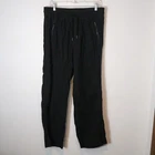 Athleta Cabo Linen Wide Leg Pants Womens 12 Black High Rise Pull On Boho Beach rise 11 inches inseam 29 inches