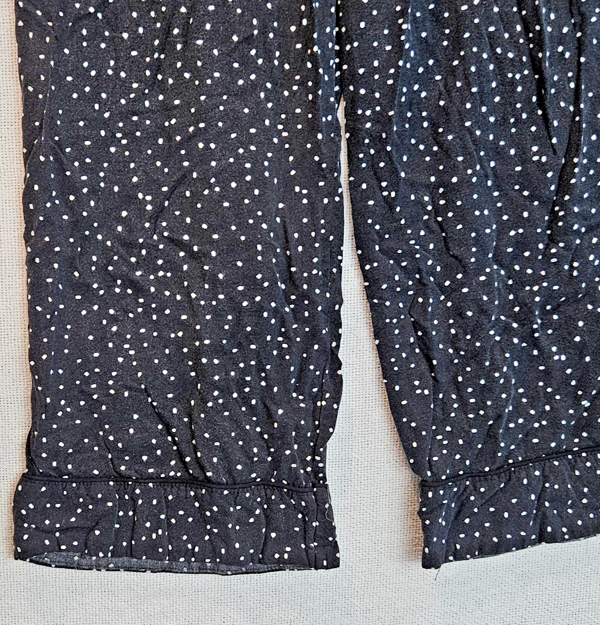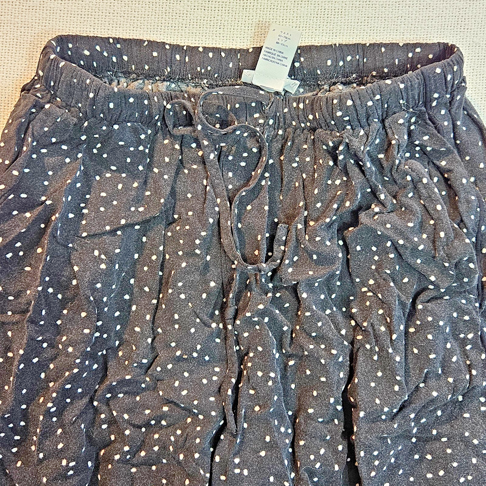 These black and white polka dot pants by Forever 21 are a stylish and versatile addition to any woman's wardrobe. Made from lightweight and breathable rayon fabric, these pants feature an elastic waist with a drawstring closure for a comfortable and adjustable fit. The high-rise design and wide-leg style give a flattering silhouette, perfect for casual outings, parties, or even travel. The pleated accents add a touch of flair to the classic polka dot pattern, making these pants a trendy choice for the summer, fall, or spring seasons. Easy to care for and machine washable, these pants are a must-have for any fashion-forward woman.
