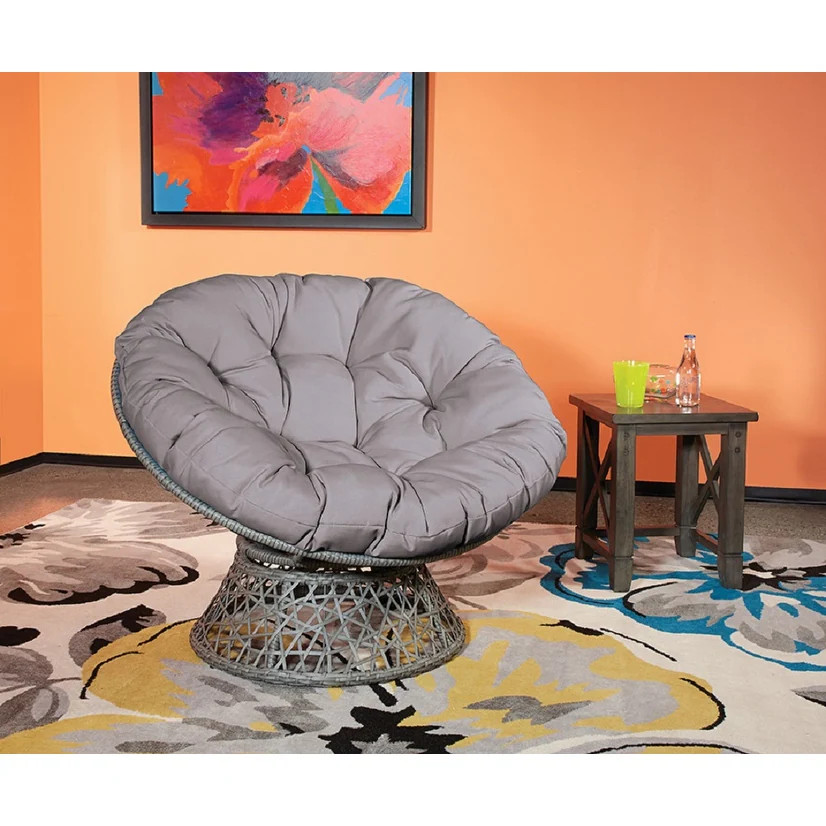 Relax in style with our modern take on the classic papasan chair. Sink into the generously sized cushion filled with high-quality Dacron. Our sturdy metal frame is wrapped in long-lasting resin wicker for a boho-inspired look. With a 360° swivel, you can easily turn to your heart's content. Perfect for lazy days of lounging, enjoying your favorite music and drinks. Available in a variety of exciting colors and finishes to fit any style. Well-built, durable, and effortlessly cool.Features: Generously sized Dacron-filled cushion Sturdy metal frame wrapped in durable resin wicker 360° swivel for easy movement Perfect for living rooms, family rooms, or dorms Available in multiple colors and finishes Free Shipping Over $49.99* Details OS Home and Office Furniture Model Papasan Chair with Grey cushion and Dark Grey Product Description: Relax in style with our modern take on the classic papasan chair. Sink into the generously sized cushion filled with high-quality Dacron. Our sturdy metal frame is wrapped in long-lasting resin wicker for a boho-inspired look. With a 360° swivel, you can easily turn to your heart's content. Perfect for lazy days of lounging, enjoying your favorite music and drinks. Available in a variety of exciting colors and finishes to fit any style. Well-built, durable, and effortlessly cool. Features: Generously sized Dacron-filled cushion Sturdy metal frame wrapped in durable resin wicker 360° swivel for easy movement Perfect for living rooms, family rooms, or dorms Available in multiple colors and finishes