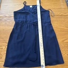 Effortlessly chic and lightweight, this navy blue mini dress by Paper Crane is perfect for warm weather or layering under a cardigan or denim jacket. Featuring adjustable spaghetti straps, a flattering V-neckline with subtle lace trim, and a drawstring tie waist for a custom fit. The dress is fully lined for comfort and coverage. Made from soft polyester, it’s easy to wear and ideal for daytime outings, date nights, or casual gatherings. Details: • Brand: Paper Crane • Size: Medium (M) • Color: Navy blue • Style: Sleeveless mini dress • Neckline: V-neck with lace trim • Features: Adjustable straps, drawstring waist, fully lined • Material: • Body: 100% polyester • Lining: 100% polyester • Care: Hand wash cold, hang dry • Made in China • Condition: Gently pre-owned, excellent condition A classic silhouette with feminine charm—ready to dress up or down for any occasion.