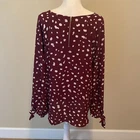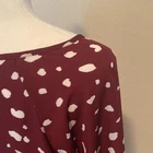 This Papermoon blouse features a relaxed, boxy fit in a striking maroon and white color scheme. The top is designed with a comfortable, flowy fabric and a rounded neckline, making it perfect for casual wear. Its stylish simplicity and ease of wear make it a versatile addition to any wardrobe. Great condition! Measurements laying flat: PTP: 21” Sleeve inseam: 16” Length: 24-26”
