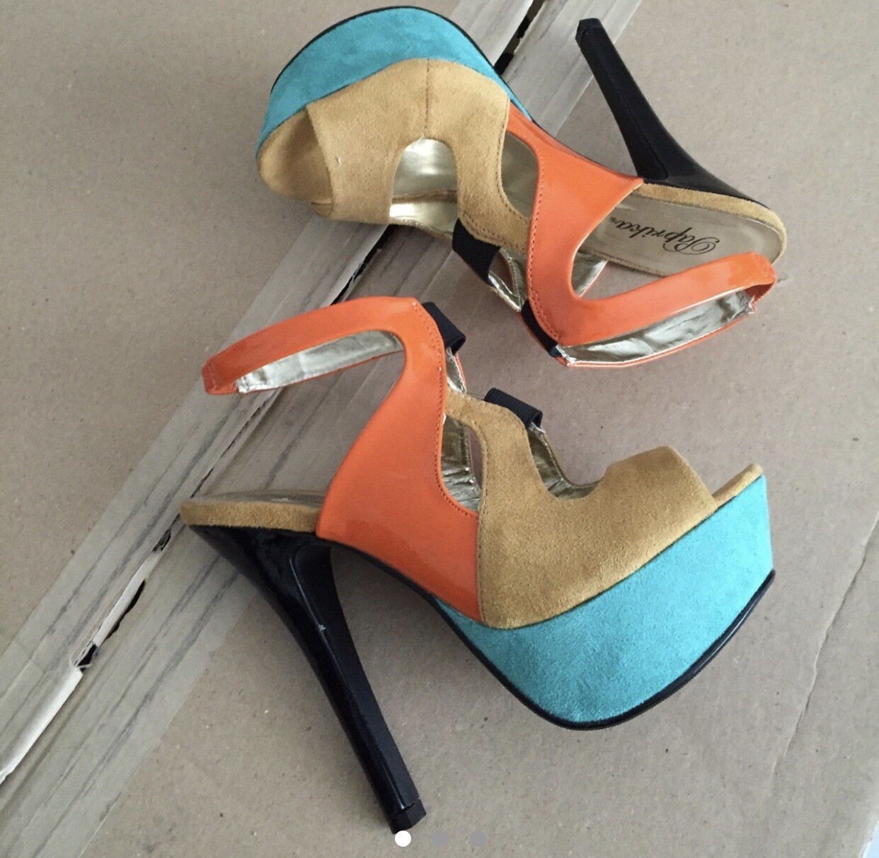 Paprika color block heels 5.5. Super cute | never been worn | size 5.5/ comfy #heels #colorblockheels #strappyheel All final sale Night out, dressy, party , date,