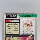 Parasect No.047 Pokemon Card Japanese Carddas Series Bandai 1997 Japanese Description Grade Moderately played Appearance Please check photos. Packing The card will be put in sleeve and protected by cardboard. Shipping We always send the item with a tracking number. So please place an order without any concern on delivery. You can always track the delivery status. Shipping is only available to the address registered in eBay. If you want us to send another address, please change your address on eBay and then place an order. Shipping is available from Monday to Friday. Weekends are not available because freight (shipping) companies are closed. We do not mark merchandise values below value or mark items as ?gifts? ? Japan, US and International government regulations prohibit such behavior. About Importer's Obligation Import duties, taxes, and charges are not included in the item price or shipping cost. These charges are the buyer's responsibility. Please check with your country's customs office to determine what these additional costs will be prior to bidding or buying. Thank you for your understanding.