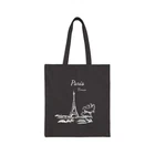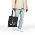 A stylish and versatile tote bag featuring a Paris France design with the Eiffel tower. Perfect for those who love travel or have a passion for French culture. Ideal for carrying everyday essentials or souvenirs from your travels. Great for tourists, Francophiles, and jet-setters. Suitable for vacations, weekend getaways, or everyday use. Product features - 100% Cotton canvas for durability - Flat corners for a sleek look - Reinforced stitching on carrying handles - Heavy fabric for sturdiness - Available in natural and black Care instructions - Do not iron directly over the printed area - print may stick to the iron. - Spot clean - Do not bleach - Line dry