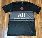 This Paris Saint-Germain 2021/2022 Nike Third Football Shirt in size small is the perfect addition to any soccer fan's collection. Made with high-quality materials and designed for comfort, this shirt is perfect for showing your support for the team during games or casual outings. Featuring the iconic Nike logo and the official Paris Saint-Germain team crest, this shirt is a must-have for any fan of the team. The black color adds a touch of style and sophistication to the shirt, while the gender-specific design ensures that it fits men comfortably. Whether you're watching the game from the stands or playing soccer yourself, this shirt is the perfect way to show your support for Paris Saint-Germain.