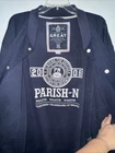 Please note there is some discoloration on the zippers. There are photos showing the slight discoloration. The Parish Nation Destined To Be Great Jacket is a navy varsity jacket in size 2XL, made from polyester material. This jacket features a full zip closure, making it easy to put on and take off. It is designed for men and has a preppy, 90s college-inspired style, perfect for adding a touch of retro charm to any outfit. The zipper accents add a fashionable touch to this classic varsity jacket from Parish Nation.