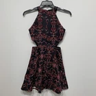 Parker Bella Black Floral Print Sleeveless Mini Dress with Cutout Waist, Flounce Hem, Size XS