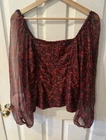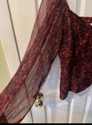 Features: Parker Catherine Silk Metallic Blouse. Bishop Sleeves. Long Sleeve. 95% Silk/5% Metallic Polyester Lining: 100% Polyester Side zip Pit to pit measures approx 18”