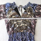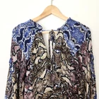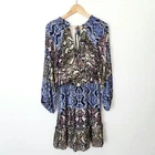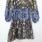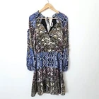 Parker Snakeskin Silk Dress Medium Ruffle Blue Brown Gladis Python Animal Print Parker snakeskin print silk dress in women's size medium. - 100% silk in color Multi Python, a gorgeous snake print in shades of brown, blue, and pink. - Flounced ruffle skirt, tiered look with stretchy smocked waist - Long sleeves with ruffle trimmed shoulders and elbow cutouts - V-neck, faux wrap with snap closure at bust. Tie v-back. - Above knee length. Lined. - Great condition! ✦ brand: parker ✦ size: medium ✦ lay flat measurements: chest: 17.25 in waist: 13.25 in (unstretched) length: 35 in ✦ material: shell: 100% silk lining: 100% polyester. ✦ original retail: $368 ✦ style name: gladis dress silk parker dress / designer dress / spring / summer / flirty / lightweight / colorful / elegant / wedding guest / formal / cocktail / party / mini / short dress / date night / blouson / floaty / day to night / boho / bohemian / cottagecore / fairy / ruffled / coquette / edgy / color block / long sleeve dress ✦ All orders ship out within 1-2 days! ✦