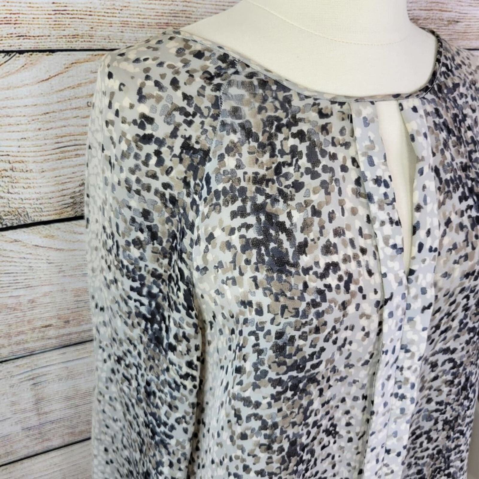 This silk top is absolutely stunning—lightweight, elegant, and perfect for layering or wearing on its own. The keyhole detail adds a chic touch, and the georgette fabric drapes beautifully. The abstract print in soft neutrals makes it versatile for any occasion. Feels luxurious against the skin, and the kimono sleeves give it a relaxed yet polished look. Great condition, fits true to size—love it!