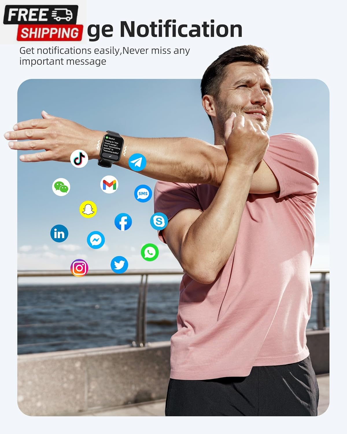 Fast Shipping On All Items 30 Days Money Guarantee Customer Support Excellent Service 100% Satisfaction Satisfaction Guaranteed Parsonver Smart Watch, 5ATM Waterproof Watch for Swimming, Fitness Activity Tracker with 110+ Sports Modes, Heart Rate/Sleep/Spo2/Calories Monitor, Pedometer, Fitness Watch for Android & Iphone, Black Specification Item model number FF2 Battery Capacity 320 Milliamp Hours Operating System Compatible with iOS 9.0/Android 6.0 or above Smartphones Battery Cell Composition Lithium Ion Color Black Memory Storage Capacity 512 MB Product Dimensions 9.84 x 1.5 x 0.43 inches Connectivity Technology Bluetooth Item Weight 37 Grams Manufacturer Parsonver Shape Square Wireless Communication Standard Bluetooth Standing screen display size 1.8 Inches Batteries 1 CR5 batteries required. (included) GPS No GPS Screen Size 1.8 Inches Special Feature function(f) {var _np=(window.P._namespace("DetailPageProductOverviewTemplatesJava"));if(_np.guardFatal){_np.guardFatal(f)(_np);}else{f(_np);}}(function(P) { P.when('A').execute(function(A){ A.on('a:truncate:po-attribute-truncate-2:updated', function(data) { var isTruncated = !data.truncateInstance.getIfTextFits(); var seeMoreElement = document.getElementById('po-attribute-see-more-id-2'); if(seeMoreElement) { seeMoreElement.style.display = isTruncated ? '' : 'none'; } }) }); })); 5ATM Waterproof for Swimming Monitor, 24H Heart Rate/Blood Oxygen(SpO2)/Sleep/Stress Monitor, 110 +Sports Modes, SMS, Text and App Smart Notifications, 200+ Custom Watch Faces, Multiple Sports Tracking, Stopwatch, Exercise Tracking, Alarm Clock, Music Control, Camera Control, Email Notifications, Weather, Compatible With iPhone and Android, Timer, Sedentary Reminder, Activity Data, Breathing Training Monitoring, Women Health Monitoring, Message Reminders, Find Your Phone, Exercise Records, Lightweight and Portable Design, Step, Calorie, and Distance Tracking, Daily Activity Tracking, Brightness Adjustment, Raise To Wake Feature, etc. See more Size 1.8" Item Description 【5ATM WATERPROOF SWIMMING WATCH – THE PERFECT SWIM TRACKER AWAITS, FOR SWIMMING & DIVING】Dive into performance with the Parsonver 5ATM Waterproof Swimming Watch—designed for serious swimmers and daily wear. With a 50m water resistance rating, it automatically tracks Butterfly, Backstroke, Breaststroke, and Freestyle, offering key swim metrics like stroke count, rate, and SWOLF. For best results, avoid using buttons underwater or wearing the watch in hot baths, saunas, or steam rooms. 【SMART WATCH FITNESS TRACKER WITH 110+ SPORTS MODES】Elevate your fitness journey with our versatile fitness watch, offering over 110 sports modes to suit every lifestyle, whether indoors or outdoors. Whether you enjoy walking, running, cycling, swimming, practicing yoga, or hitting the gym, this activity tracker watches your heart rate, steps, and calories burned, helping you make the most of every workout. Embrace the freedom to explore new activities and turn your daily efforts into meaningful progress. Stay motivated and connected to your health goals with a stylish sport watch that fits seamlessly into your life! 【24-HOUR ACCURATE HEALTH MONITORING & ALL-DAY ACTIVITY TRACKING】Unlock your health potential with the Smart Watch for Men and Women! This stylish heart rate monitor/sleep tracker provides real-time heart rate monitoring, blood oxygen measurement, and sleep analysis, keeping you informed about your wellness. Effortlessly track daily steps, calories burned, and activity time, while receiving insights into stress levels and sedentary alerts to stay active. Additionally, with specialized menstrual cycle tracking, women can manage their health with confidence. Don’t miss out—make the Parsonver Smart Health Watch your essential companion for a healthier, more vibrant life! 【CALL, TEXT, AND SMART MESSAGE NOTIFICATIONS】Stay effortlessly connected with incoming call notifications, SMS, emails, and real-time alerts from your favorite apps like WhatsApp, LinkedIn, Instagram, and Twitter, all seamlessly synced with your mobile app; enjoy the convenience of managing your communications directly from your wrist—easily reject calls without the need to reach for your phone. (Note: While you can decline calls on the watch, direct answering or replying isn’t available.) 【1.8-INCH VIBRANT HD TOUCHSCREEN WITH 200+ CUSTOMIZABLE WATCH FACES】Experience the future of smartwatch technology with the Parsonver smartwatch, featuring a stunning 1.8-inch HD touchscreen that delivers breathtaking visuals and an immersive experience. Enjoy crystal-clear visibility in any lighting condition and easily refresh your style with over 200 customizable watch face options. Plus, personalize your digital cool watch by uploading your favorite photos, making it a unique expression of your individual style. Stand out every day with Parsonver pedometer watch! 【EXPLORE MORE AMAZING FEATURE】This Step and Calorie Tracker Watch goes beyond simply monitoring your daily activities; it’s packed with a wealth of practical functionalities! Enjoy all-day activity tracking, workout logs, breathing exercises, women’s health monitoring, weather updates, music control, stopwatch, alarms, timers, camera control, brightness adjustment, sedentary reminders, phone finder, wrist-raise wake-up features, and more. It’s your personal health and lifestyle assistant, always by your side to help you manage your life and health, ensuring you stay energized and vital every day! 【EXTENDED BATTERY LIFE & BROAD COMPATIBILITY】Enjoy up to 7 days of use or 40 days on standby with a single charge—no more daily charging anxiety! Powered by a high-efficiency battery and fast charging. Smoothly syncs with Android 6.0+ and iOS 9.0+ smartphones for instant message and app alerts. Not compatible with tablets, computers, or any non-smartphone devices. Smart, stylish, and made to keep up with your lifestyle. 【24/7 FRIENDLY SUPPORT & THE PE
